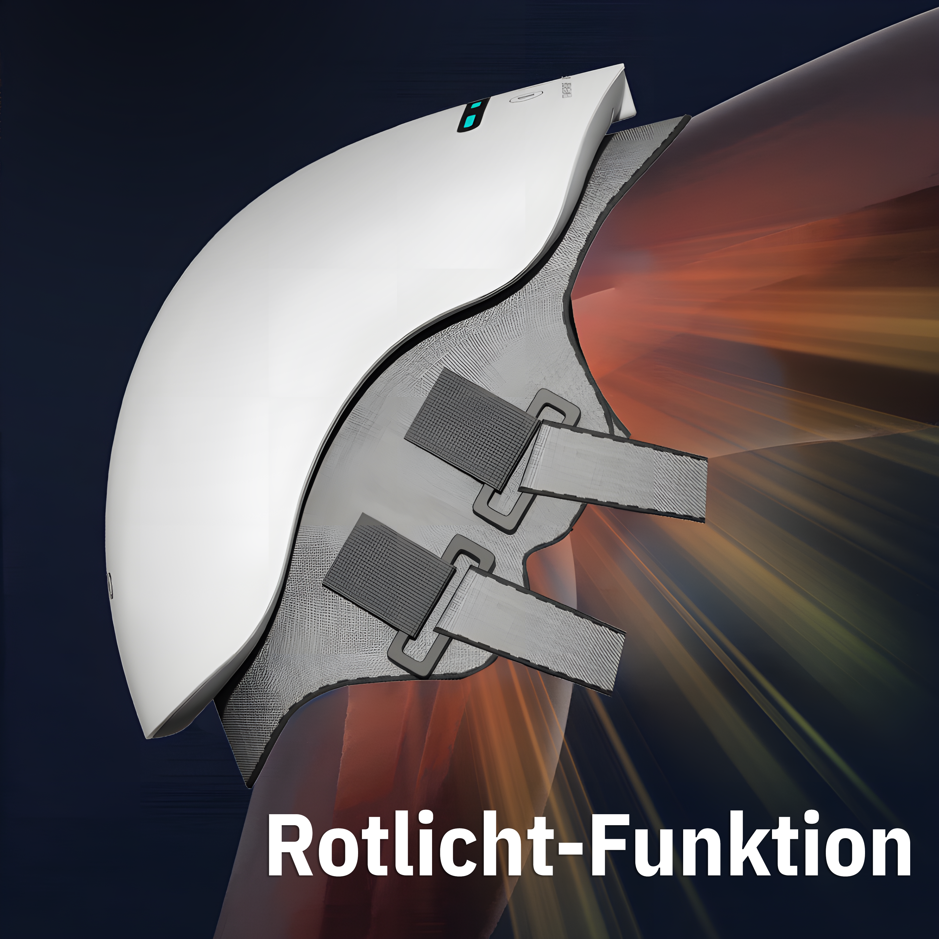 Das sanfte Rotlicht des KnieVita Plus erzeugt eine angenehme Tiefenwärme, die den Kniebereich wohlig durchdringt und für ein beruhigendes Entspannungsgefühl sorgt.