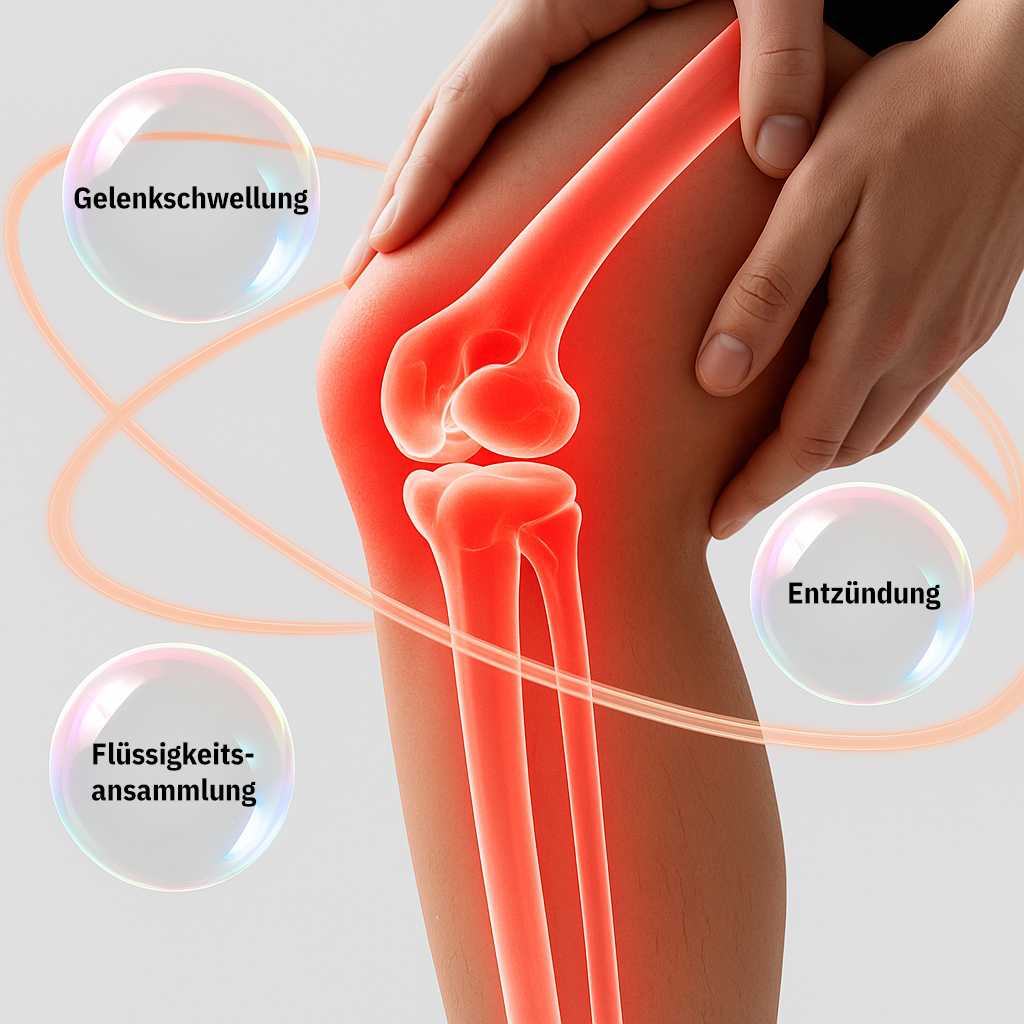 Flüssigkeitsansammlungen, unangenehme Gelenkschwellungen und schmerzhaft entzündete Strukturen machen jede Bewegung zur Belastung. Der Druck im Knie steigt, die Spannung nimmt zu und selbst einfache Alltagsschritte werden zur Herausforderung.