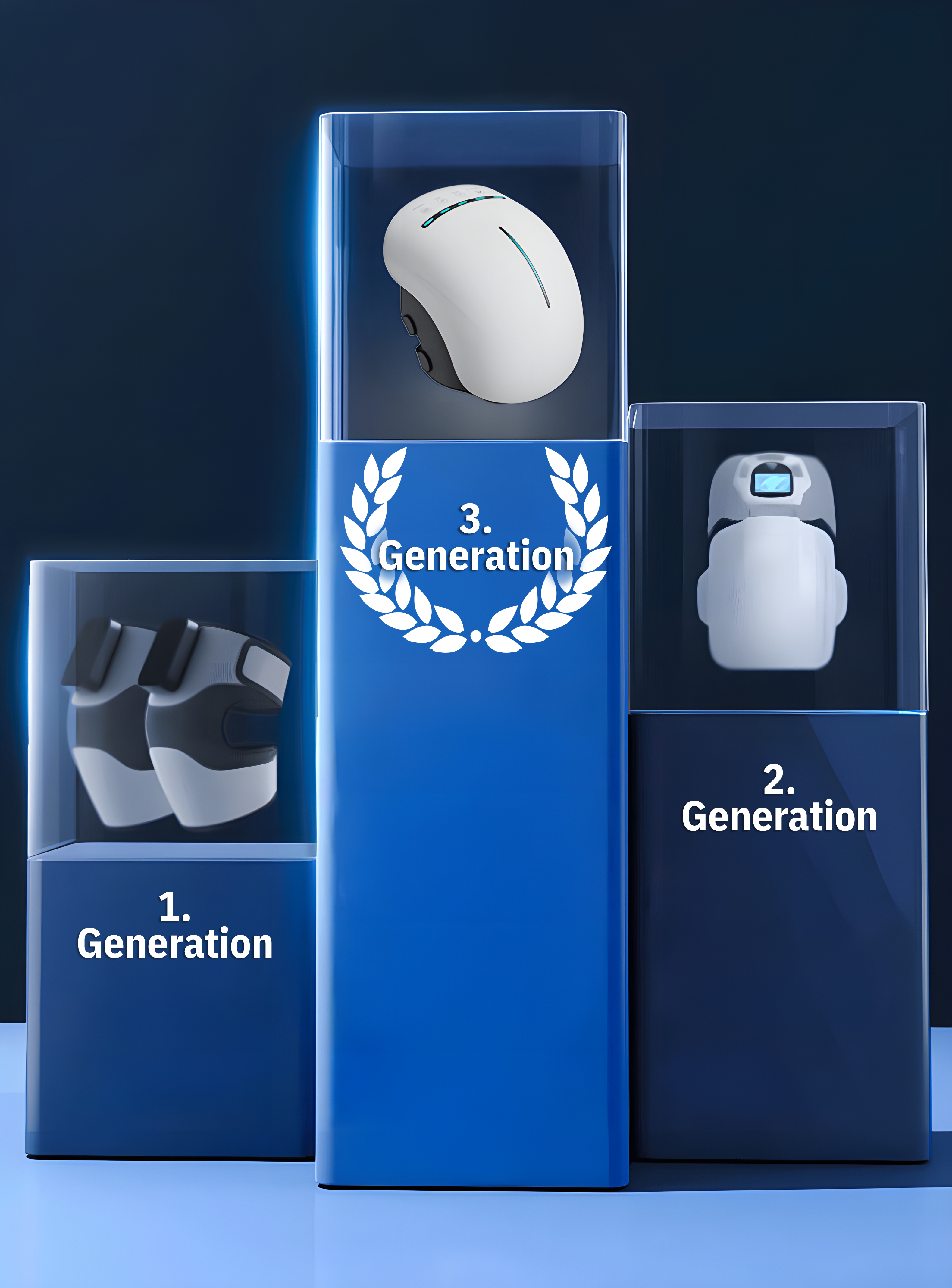 Mit der neuesten Version des KnieVita Plus erhältst du deutlich mehr Leistung, bessere Therapieeffekte und modernste Technologie. Entwickelt, um dir das fortschrittlichste Knie-Wellness-Erlebnis zu bieten.